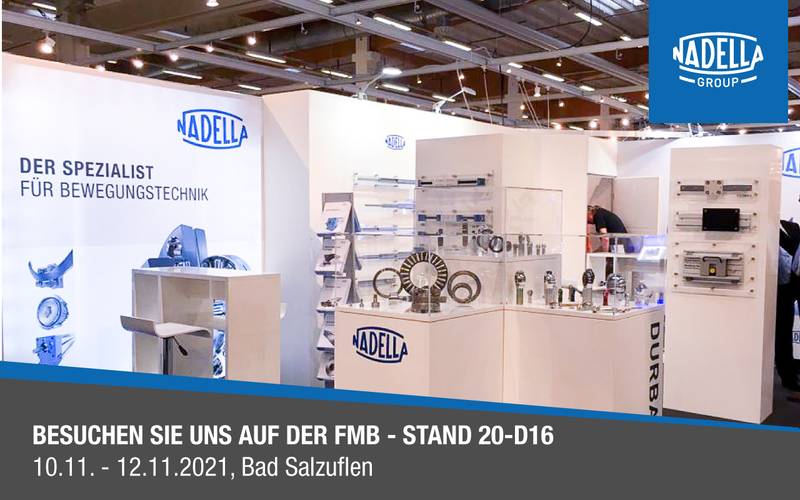 Mit über 550 Ausstellern findet in diesem Jahr die FMB Zuliefermesse Maschinenbau in Bad Salzuflen statt und auch die NADELLA wird in diesem Jahr dort vertreten sein. An unserem Stand 20-D16 werden Sie unsere aktuellen Highlights finden und Sie können sich umfassend über unser gesamtes Sortiment informieren. Wir freuen uns auf Ihren Besuch vom 10.11. bis 12.11.2021 auf der FMB in Bad Salzuflen.