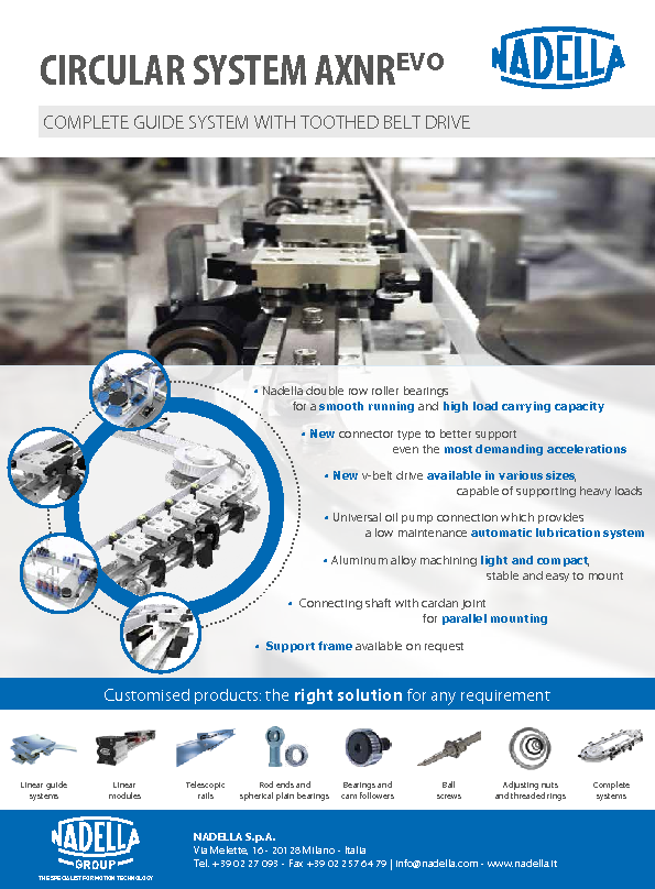 Das Ovalsystem AXNR EVO ist eine Weiterentwicklung der Nadella AXNR-Linie, einem flexiblen und anpassungsfähigen System, das auf FSR-Schienen basiert und sich an zahlreiche Anwendungsbereiche anpassen kann - von der modernen Verpackungsautomatisierung bis hin zu VR-Simulatoren.